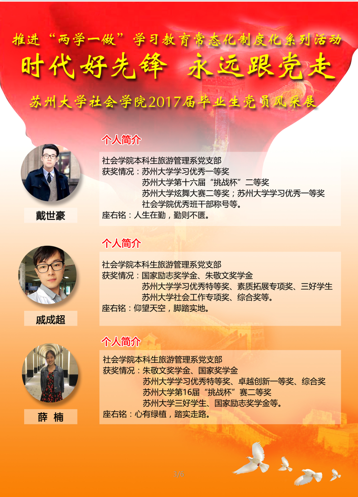 推进“两学一做”学习教育常态化制度化系列活动——皇冠博彩 2017届毕业生党员风采展